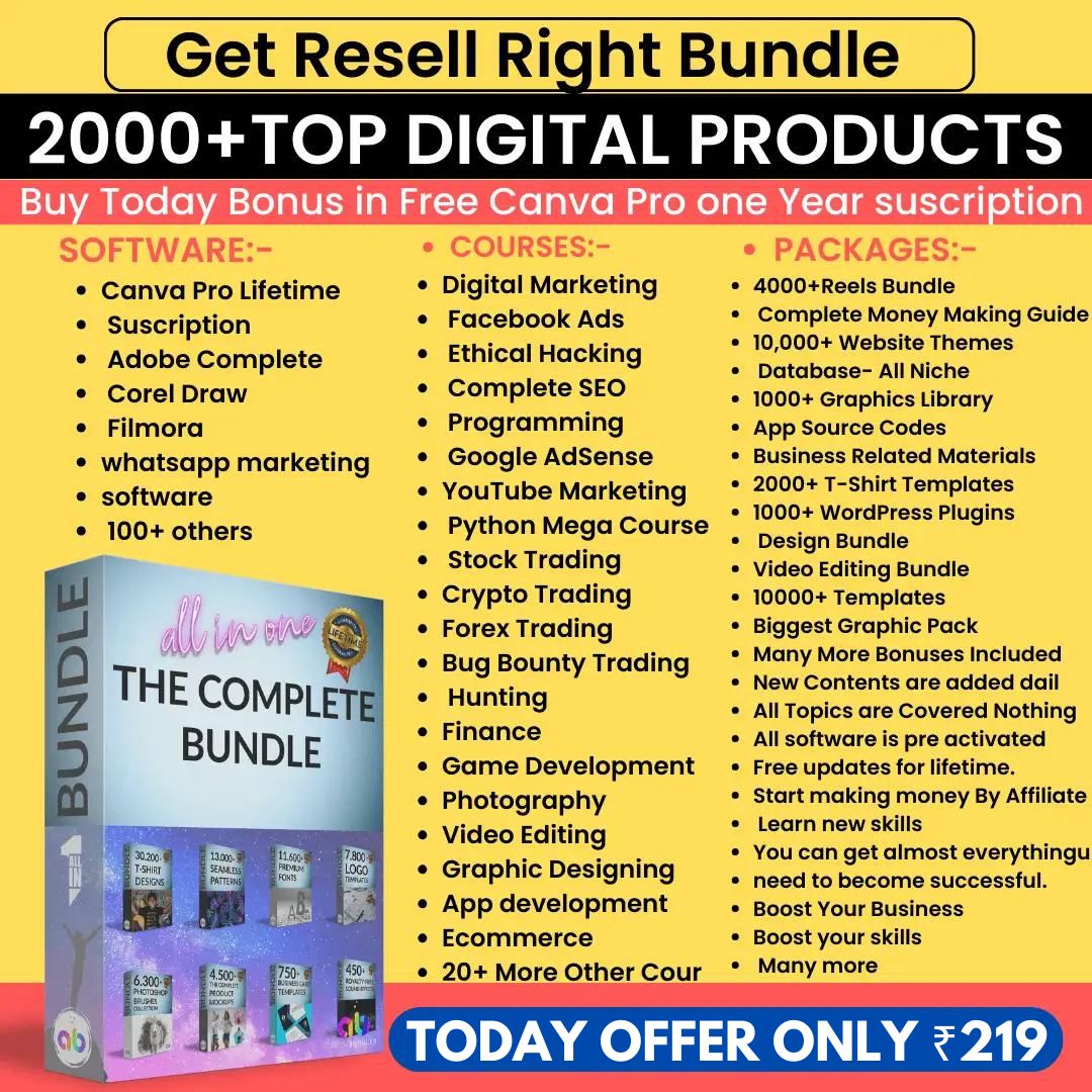 ๐ธYou will get more than 100+ digital product bundles, eBooks, Ad Creatives, WhatsApp Software, Templates and many more that you can sell with our secret strategies and generate lakhs of revenue for yourself.